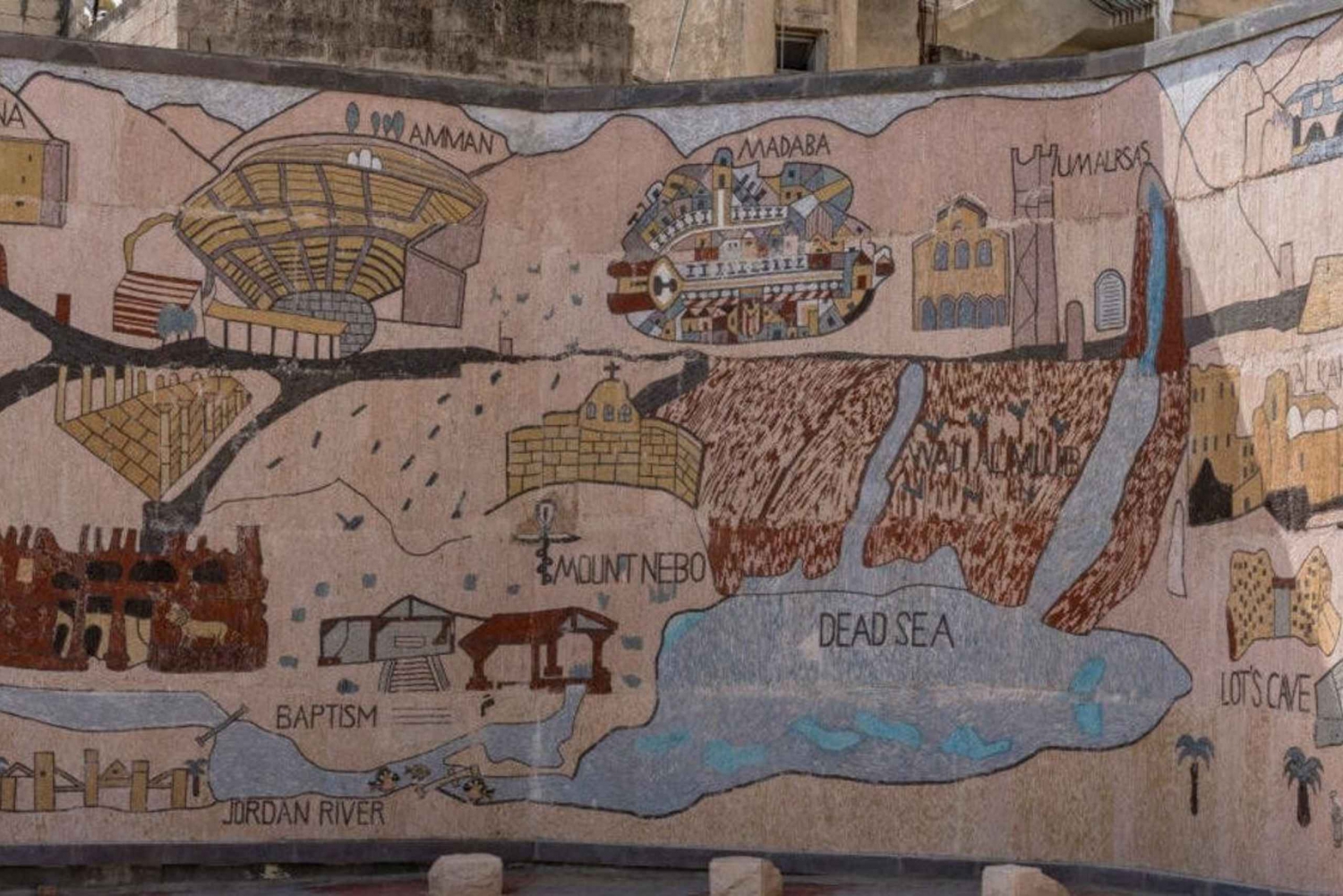 Rozpocznij swoją podróż w Madabie, słynnej jako „Miasto mozaik”. Jego sława bierze się ze wspaniałej mozaikowej mapy Ziemi Świętej, zachowanej na podłodze św. Kościół św. Jerzego, który będziesz mieć okazję zwiedzić.